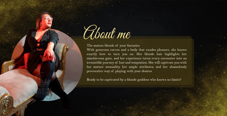 With generous curves and a body that exudes pleasure, she knows exactly how to turn you on. Her blonde hair highlights her mischievous gaze, and her experience turns every encounter into an irresistible journey of lust and temptation. She will captivate you with her mature sensuality, her ample attributes, and her shamelessly provocative way of playing with your desires. 💋