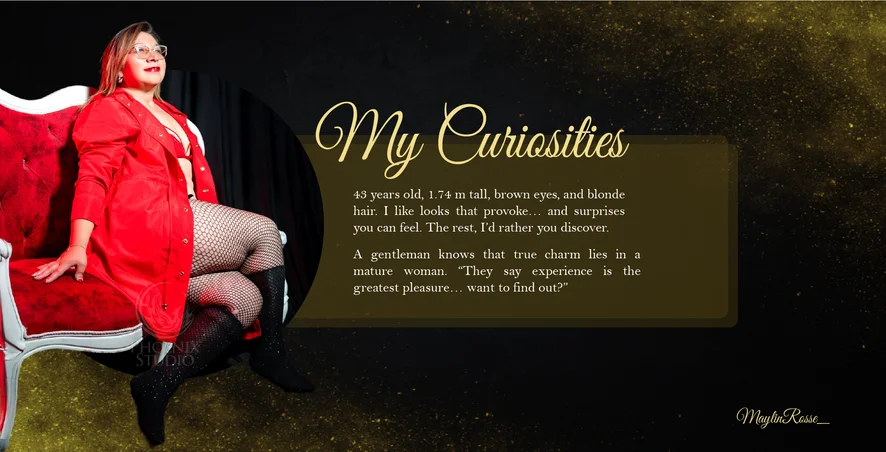 “Mature, seductive, and with a mind full of fantasies... I love to talk, seduce, and discover what turns you on. Between laughter, glances, and caresses, I can be your sweetest friend or your most dangerous temptation... How far do you want us to go?” 💋