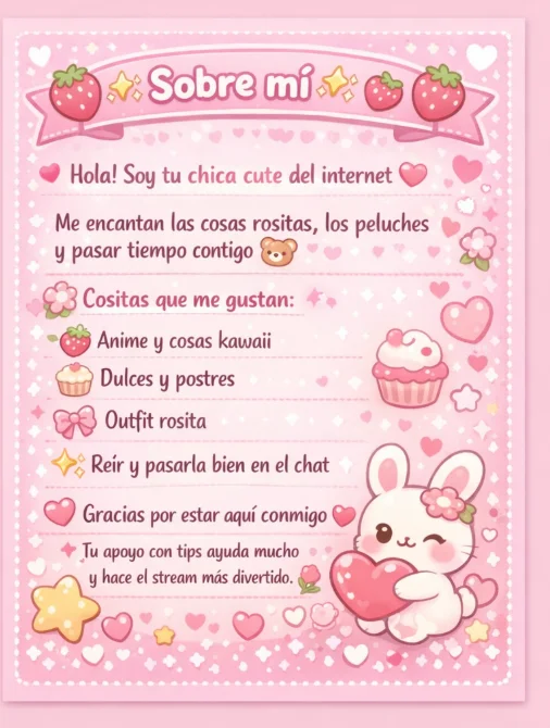 ✨ Soy una chica un poco tímida al principio… pero cuando entro en confianza me gusta jugar, coquetear y dejar volar la imaginación. Si te gustan las miradas dulces con un toque travieso, quédate conmigo y descúbrelo. 😘💫